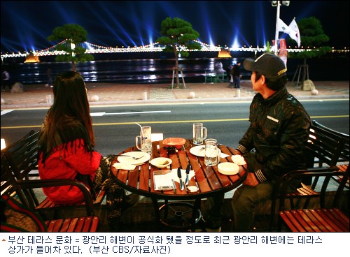 요즘 광안리해수욕장을 찾으면 외국의 해변을 방불케 할 정도로 탁 트인 야외 테라스가 즐비하게 늘어져 있다.