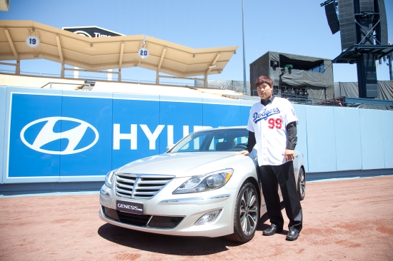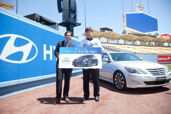 현대자동차는 미국 현지시간으로 17일, 미국 로스앤젤레스 다저 스타디움(Dodger Stadium)에서 미국 메이저리그에서 활약 중인 류현진 선수에게 제네시스와 싼타페를 전달하는 행사를 가졌다고 밝혔다.