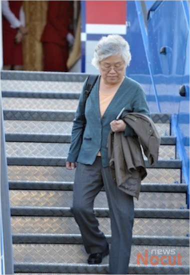 평양에 도착한 케네스 배 어머니 손명희 씨 사진=조선신보)