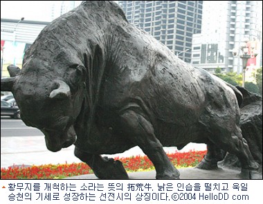 센젠의 상징은 대붕. 장자에 나오는 이 새는 날개 길이만 몇 천리에 달하는 엄청난 크기의 새이다. 오랜 세월동안 꼼짝않고 있다가 한 번 날면 하루에 9만리를 난다는 새. 대붕의 고향이 센젠시이고, 그 상징으로 시청사 모양을 대붕이 날개를 편 것처럼 만들었다. 그리고 그 상징처럼 오랜 기간의 인내끝에 마침내 한 번 비상으로 중국 최고의 도시가 되었다.