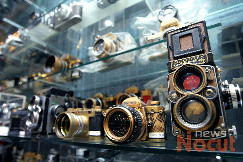문씨의 갤러리 진열장에는 갖가지 희귀한 카메라들이 헤아릴 수 없을 정도다. 의료용으로 만들었다는 초접사 카메라 '라이카3F'와 쌍안경을 겸한 일제 '타스코 8000', 본체에 붙은 렌즈가 지갑처럼 접혀 수납되는 '레티나', 옛 동독의 카메라시장을 석권했던 '엑사', 박정희 전 대통령의 지시로 만들어졌다는 최초의 국산 카메라 '코니카 35BC-1'…. 이 밖에도 캐논 본사의 제품군 진열장에도 없는 최초 모델과 높은 제조원가 탓에 몇 개 만들었다가 단종해버린 밝기 0.75의 전설로 남아 있는 렌즈도 진열장의 한 자리를 차지하고 있다. 전시해 놓지는 않았지만 손보지 않고 따로 보관해둔 것 중에는 냉장고 크기만 한 초창기 카메라도 있다고 했다. 문씨를 만나 카메라에 담긴 사연들을 들어봤다.