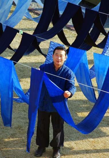 중요무형문화재 115호 염색장 정관채씨는 쪽 염색의 대가다. 한국관광공사 제공.