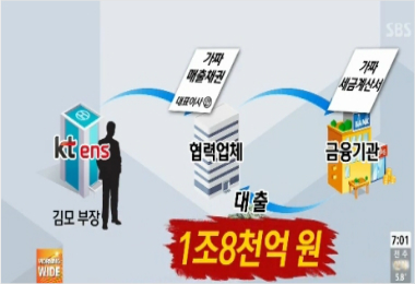 ◇ 김현정> 쉽게 말해서 가짜 세금계산서, 가짜 매출 채권 이런 것 내밀면서 '봐라, 우리가 KT ENS에다가 이만큼 납품하기로 계약이 된 협력업체다. 그러니까 돈 빌려다오' 이렇게 된 겁니까?