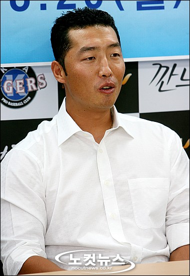 20일 오후 서울 도곡동 야구회관에서 열린 ''서머리그 MVP 기자단 투표''에서 초대 최우수선수(MVP)로 뽑힌 삼성 심정수 선수가 취재진의 질문에 답하고 있다.