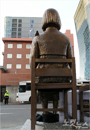 일본 대사관 앞에 설치된 소녀 형상의 '평화비'