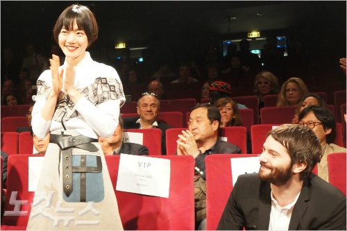 19일(현지시간) 프랑스 칸에서 열린 영화 '도희야' 공식시사회에서 배두나(왼쪽)와 짐 스터게스가 나란히 앉아 있다.