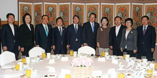 20일 오후 서울 영등포구 여의도 국회의사당 사랑재에서 각 당 원내대표 및 5선 이상 중진의원들이 정의화 국회의장 주최로 오찬 간담회를 갖고 있다. 오찬에는 정의화 국회의장과 새누리당 이인제 의원, 새정치민주연합 안철수 공동대표와 박영선 원내대표, 정의당 심상정 원내대표와 통합진보당 오병윤 원내대표 등 각 당 중진의원들이 참석했다. (사진=윤성호 기자)