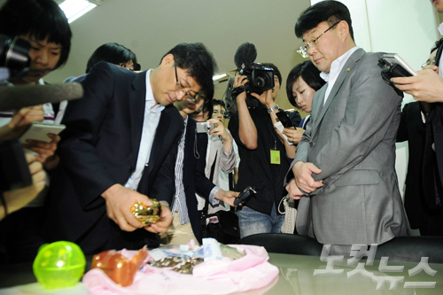조전혁 전 의원이 지난 2010년 법원으로부터 강제이행금 선고를 받고 전교조 본부에서 강제이행금 일부를 납부하고 있다. (사진=윤창원 기자/자료사진)