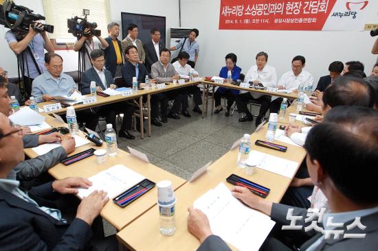 새누리당 김무성 대표를 비롯한 당 지도부가 1일 오전 종로 광장시장을 찾아 소상공인과의 현장 간담회를 가지고 있다.
