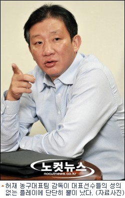 농구대표팀과 상무의 연습경기가 펼쳐진 2일 용인 마북리 KCC 연습장. 경기가 끝난 뒤 선수들을 모아놓은 허재 감독의 호통이 시작됐다.