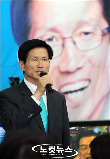 제5회 전국동시지방선거 개표가 진행되고 있는 3일 새벽 경기도 수원 영화동 한나라당 경기도당 개표상황실을 찾은 김문수 경기도지사 후보가 소감을 밝히고 있다.