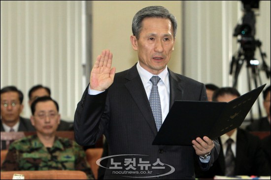 김관진 국방부 장관 후보자가 3일 오전 서울 여의도 국회 국방위원회에서 열린 인사청문회에 앞서 선서하고 있다.