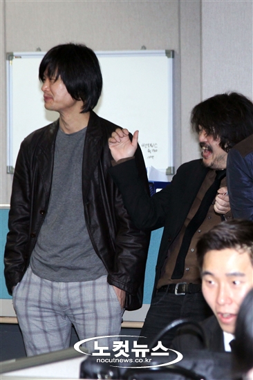 19대 총선 야권연대 노원갑 단일후보로 민주통합당 김용민(나꼼수 PD) 후보가 최종 선출된 가운데 22일 오전 서울 여의도 국회 정론관에서 가진 공동선거대책본부 발족식 기자회견에 함께한 '나꼼수' 김어준 총수가 통쾌한 표정으로 웃고 있다.