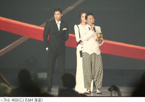 올해 MAMA에서 4관왕을 차지한 싸이는 ‘강남스타일’로 최고의 노래상에 이름을 올렸다. 싸이는 “올해를 절대 잊지 못할 것 같다. 좋아도 좋아도 올해는 너무 좋은 것 같다. YG에 감사하고 좋은 상 준 Mnet에 감사하고 미국에서 같이 일하는 스쿠터브라운, 유니버설에 감사하다. 그리고 가족 감사하다”며 “후배들이 우리 K팝을 먼저 열심히 알렸다. 고맙다는 얘기하고 싶다. 이 상을 우리 대한민국 가수들에게 돌리겠다”고 말했다.