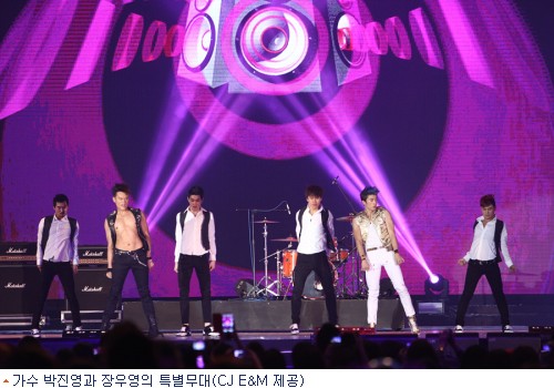 SM엔터테인먼트 소속 아이돌그룹 샤이니와 EXO는 함께 ‘루시퍼’ 무대를 꾸몄고, 팝스타 B.o.B는 서인영, 케이윌과 각각 ‘에어플래인’, ‘낫씽 온 유’를 열창해 현장 분위기를 고조시켰다.