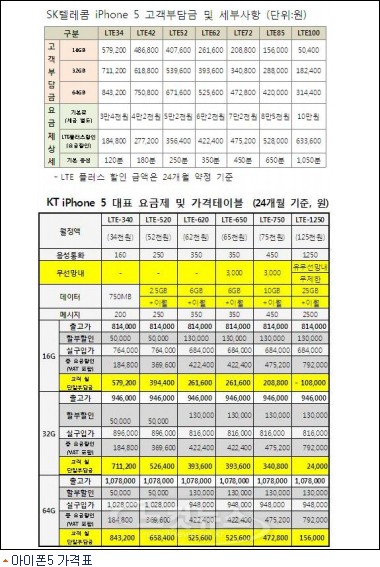 아이폰5 가격표