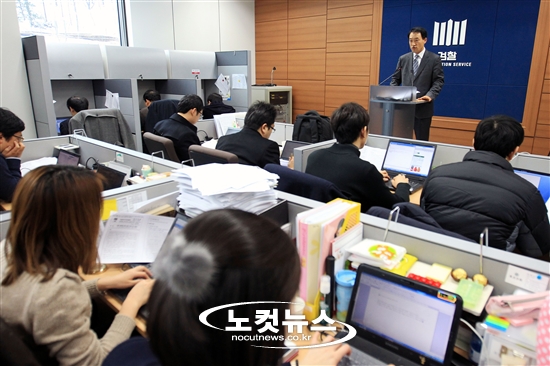 김석제 첨단범죄수사제2부 부장검사가 5일 오후 서울고등검찰청에서 경제능력이 부족한 서민층을 상대로 전화 대출사기(보이스피싱)를 벌인 혐의(사기 등)로 A(44) 씨 등 일당 10명을 구속 기소하고, 40명을 불구속 기소한 사건과 관련해 브리핑하고 있다.