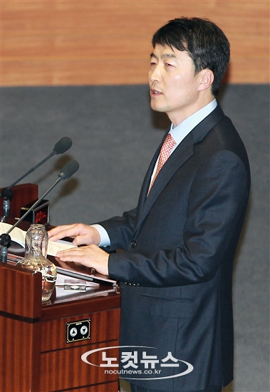 새누리당이 비례대표 부정 경선에 연루된 통합진보당 이석기. 김재연 의원에 대한 자격심사안 서명작업에 돌입한 가운데 22일 오후 국회 본회의에서 이석기 의원이 신상발언을 통해 자격심사 시도 철회를 요구하고 있다.