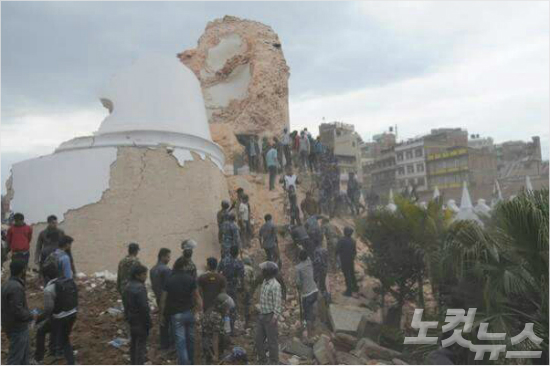 네팔 강진, 세계문화 유적인 다라하라 타워 붕괴된 모습 (사진=생명사랑 네팔지부 제공)