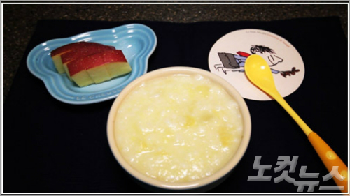 진밥 180g, 찐고구마 50g, 사과 50g, 치즈 3장, 물 또는 육수 200ml