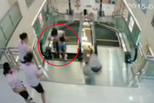 27일 중국 매체에 따르면 전날 오전 10시쯤 허베이성 징조우 시내의 쇼핑몰에서 한 여성이 아들과 함께 쇼핑을 즐기려 에스컬레이터에 올랐다.