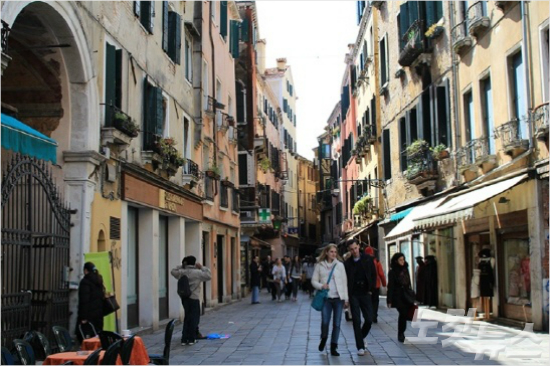 물론, '물의 도시' 베네치아도 빼놓을 수 없다. 원래 베네치아는 늪지대로 이뤄진 지역이었으나 기원 후 7, 8세기 경 많은 사람들이 베네치아로 이주해 육지에 있는 나무를 가져다가 갯벌 위에 말뚝을 박고, 돌을 얹어 도시국가로 발전하기 시작했다. 한마디로 인공섬인 셈. 베네치아 산타루치아 역을 지나 본섬 안쪽으로 들어가면 자동차나 오토바이 같은 교통수단을 전혀 볼 수 없다. 오직 도보 혹은 바포레토와 같은 수상 버스를 이용해 이동해야 한다.