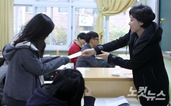2016학년도 대학수학능력시험을 하루 앞둔 수험생이 11일 오전 서울 서초구 서초고등학교에서 수험표를 받고 있다.