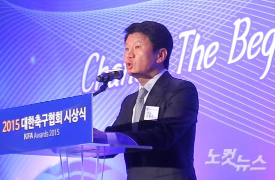 정몽규 대한축구협회 회장이 23일 서울 용산구 효창동 백범김구기념관에서 열린 2015 대한축구협회 시상식에서 인사말을 하고 있다.