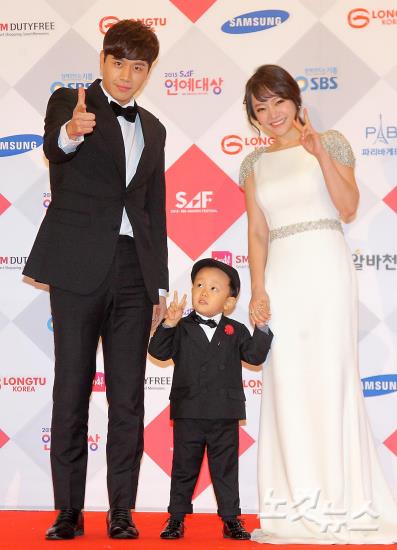 30일 저녁 서울 삼성동 코엑스에서 열린 2015 SBS연예대상 시상식에서 오! 마이 베이비의 손준호, 김소현, 주안 가족이 포즈를 취하고 있다.