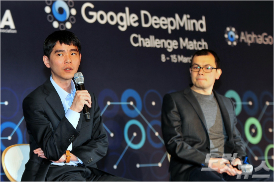 바둑기사 이세돌 9단이 10일 오후 서울 종로구 포시즌스호텔에서 열린 구글 인공지능(AI) 알파고의 두 번째 대국을 마친 뒤 기자회견을 하고 있다. (사진=한국기원 제공)