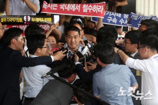 가습기 살균제 사망사건의 최대 가해업체인 옥시레킷벤키저(옥시)의 존 리 전 대표가 23일 오후 서초동 서울중앙지검에 피의자 신분으로 출석하고 있다.