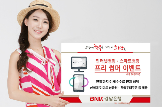BNK경남은행은 내달 30일까지 '인터넷뱅킹·스마트뱅킹 프리 썸머 이벤트'를 진행하고 있다.