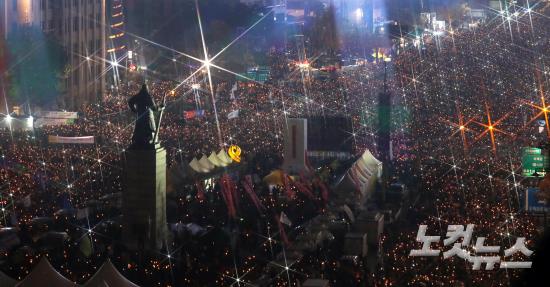 19일 오후 서울 광화문광장에서 '최순실 게이트' 진상규명과 박근혜 대통령 퇴진을 촉구하는 4차 '2016 민중 총궐기 대회'에서 촛불을 든 시민들이 행진하고 있다.