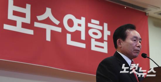 13일 오후 서울 여의도 국회 의원회관에서 열린 '혁신과 통합 보수 연합' 출범식에서 공동대표로 추대된 이인제 전 새누리당 최고위원이 인사말을 하고 있다.