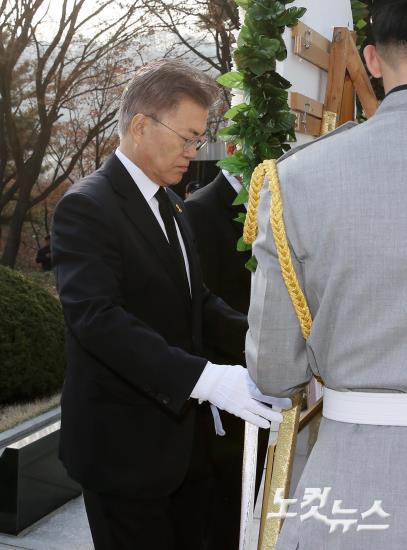 더불어민주당 문재인 대선후보가 4일 오전 동작구 국립서울현충원 고 이승만 전 대통령 묘역을 참배하고 있다.