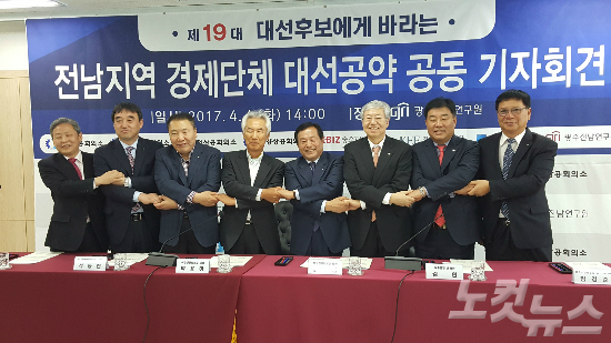 박 회장은 4일 오후 2시 광주전남연구원에서 열린 '19대 대선 후보에게 바라는 전라남도 경제단체 대선공약 공동 기자회견'을 통해 이같이 밝혔다.