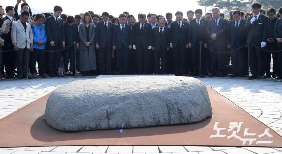 더불어민주당 문재인 대선후보가 4일 오전 경남 봉하마을 고 노무현 전 대통령 묘역을 참배하고 있다.