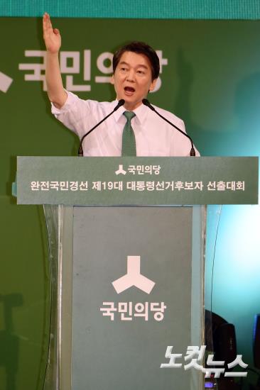 4일 오후 대전 한밭체육관에서 열린 국민의당 제19대 대통령선거후보자 선출대회에서 대선후보로 선출된 안철수 후보가 후보자 수락연설을 하고 있다.