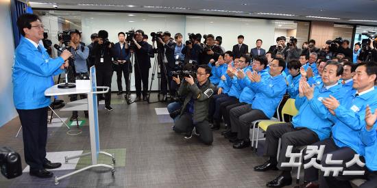 동료의원들의 박수 받는 유승민