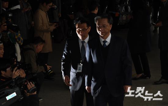 우병우 전 청와대 민정수석비서관이 6일 오전 서울 서초구 서울중앙지검에 마련된 검찰 특별수사본부에 피의자 신분으로 출석하고 있다.