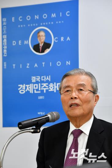 대선출마를 선언한 김종인 전 더불어민주당 비상대책위 대표가 6일 오후 여의도 캠프사무실에서 저서 '결국 다시 경제민주화다' 출판기념회를 갖고 있다.