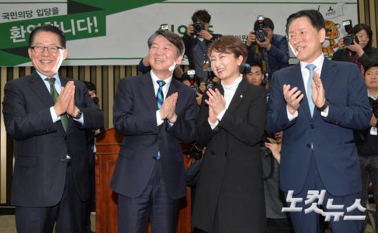 국민의당 이언주 의원 입당 환영식, 박수치는 안철수-이언주