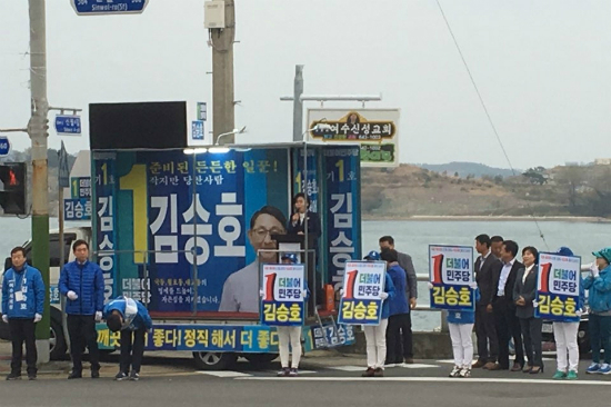 이개호 도당 위원장은 10일 오후 여수 서교동 로터리 및 교동시장 입구 등 7곳에서 여수나선거구 지원유세를 벌였다.