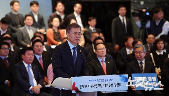 문재인 더불어민주당 대선후보가 10일 오전 서울 여의도 중소기업중앙회에서 열린 ‘차기정부 중소기업 정책 관련 강연회’ 에 참석해 중소기업 정책을 공약을 발표하고 있다.