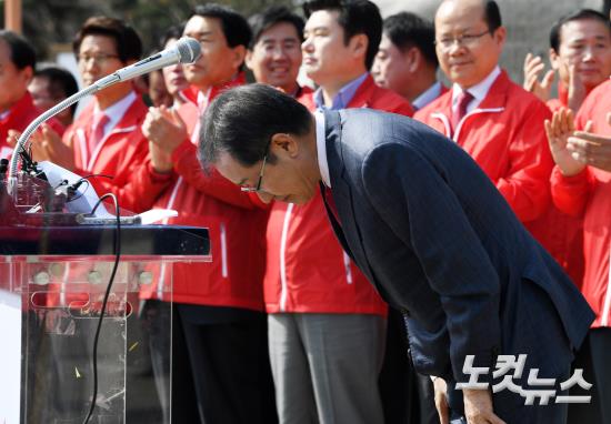 자유한국당 홍준표 대선 후보가 11일 오전 파주 임진각 테마공원에서 대국민 호소문을 발표를 마치고 인사를 하고 있다.