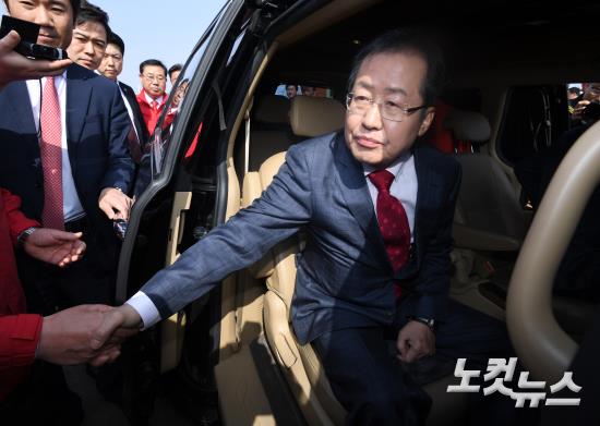 자유한국당 홍준표 대선 후보가 11일 오전 파주 임진각 테마공원에서 대국민 호소문을 발표를 마치고 승용차에 탑승하고 있다.