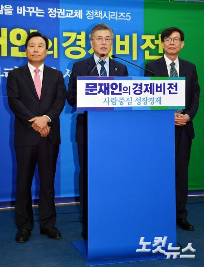 더불어민주당 문재인 대선후보가 12일 오전 여의도 당사에서 「내 삶을 바꾸는 정권교체」정책시리즈 5탄 '문재인의 경제비전-사람중심 성장경제'를 발표하고 있다.
