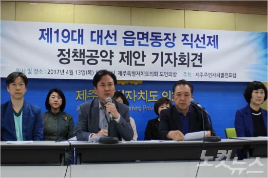 제주주민자치발전포럼은 13일 제주도의회 도민의방에서 '제19대 대선 읍면동장 직선제 정책공약 제안' 기자회견을 열었다.