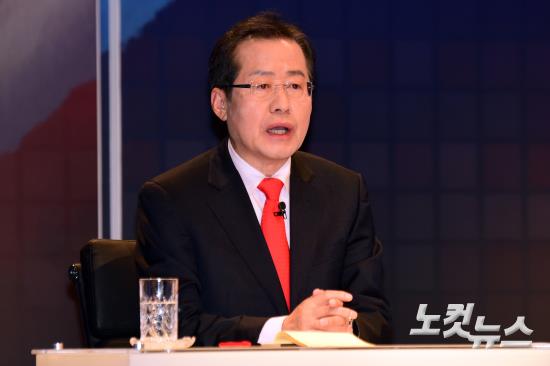SBS와 한국기자협회가 공동으로 13일 서울 마포구 상암동 SBS 프리즘 타워에서 가진 ‘2017 국민의 선택, 대통령 후보 초청 토론회'에서 자유한국당 홍준표 대선후보가 토론회를 준비하고 있다.