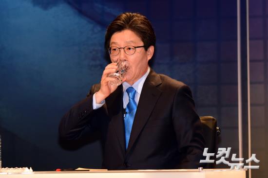 SBS와 한국기자협회가 공동으로 13일 서울 마포구 상암동 SBS 프리즘 타워에서 가진 ‘2017 국민의 선택, 대통령 후보 초청 토론회'에서 바른정당 유승민 대선후보가 물을 마시고 있다.